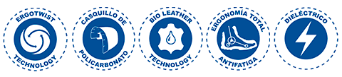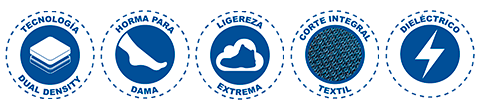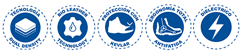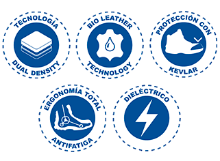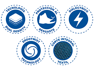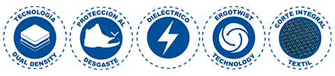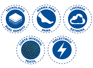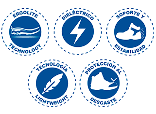 SUELA: ERGONÓMICA de hule con acrilico nitrilo al 60%. Dialéctico. Resistente 14,000 Volts.
