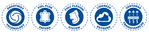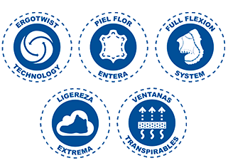 TÉCNICA DE FABRICACIÓN: Pegado strobel. Tipo guante con mayor flexibilidad.