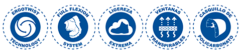 CORTE INTEGRAL: Malla poliéster de alta tenacidad y tejido. Altamente resistente a la abrasión y altas temperaturas, no se deshila. Con puntera exterior de Kevlar.