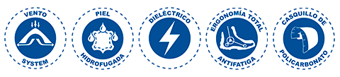 Tipo de Protección: Dieléctrico, puntera de protección, policarbonato.